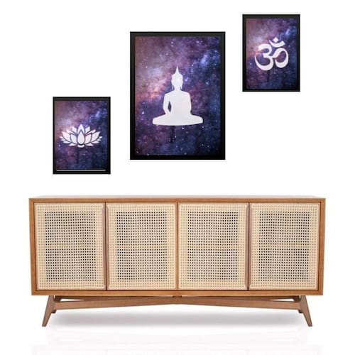 Set 3 quadros zen buda universo - com vidro Cor: moldura preta Informações do produto tire todas as suas dúvidas no descritivo abaixo: decoração para quarto, sala, cozinha, escritório, área gourmet e muito mais. Chega de paredes vazias medidas - kit composto por 3 quadros, sendo 2 quadros com 24x33cm e 1 quadro com medida 33x45cm. Material do papel - papel fotográfico brilhante de altíssima resolução acabamento - todos os quadros são acompanhados de vidro para proteção da imagem. - moldura em madeira maciça na cor preta ou branca conforme produto escolhido e pendurador . - os quadros são embalados de forma segura com plástico bolha com camada dupla de acordo com o tamanho dos quadros. Garantia - garantia de 3 meses. Meu quadro chegou. Como posso fixá-lo Você precisa apenas de um martelo e um prego, pois os quadros já vão acompanhados de penduradores. Esta é a forma mais indicada. Como posso limpar meu quadro A limpeza é feita como um móvel comum da sua casa. Apenas um pano seco ou espanador são suficientes para tal