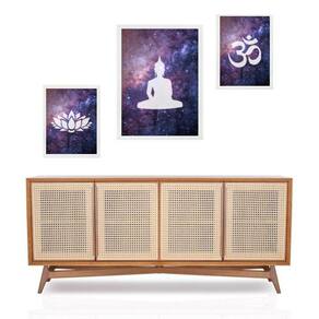 Set 3 quadros zen buda universo - com vidro Cor: moldura branca Informações do produto tire todas as suas dúvidas no descritivo abaixo: decoração para quarto, sala, cozinha, escritório, área gourmet e muito mais. Chega de paredes vazias medidas - kit composto por 3 quadros, sendo 2 quadros com 24x33cm e 1 quadro com medida 33x45cm. Material do papel - papel fotográfico brilhante de altíssima resolução acabamento - todos os quadros são acompanhados de vidro para proteção da imagem. - moldura em madeira maciça na cor preta ou branca conforme produto escolhido e pendurador . - os quadros são embalados de forma segura com plástico bolha com camada dupla de acordo com o tamanho dos quadros. Garantia - garantia de 3 meses. Meu quadro chegou. Como posso fixá-lo Você precisa apenas de um martelo e um prego, pois os quadros já vão acompanhados de penduradores. Esta é a forma mais indicada. Como posso limpar meu quadro A limpeza é feita como um móvel comum da sua casa. Apenas um pano seco ou espanador são suficientes para tal