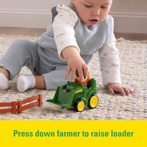 Set de juego de animales de granja TOMY ¡Las Vacas están Fuera! - Set de granja preescolar con tractores, vacas, granjeros y cercas - 14 piezas - Para niños de 18 meses en adelante - Contenido: set de juego preescolar de 14 piezas con 2 tractores de juguete, 2 figuras de granjeros, 4 figuras de vacas y 6 piezas de cercas para crear corrales - Acción de granja en funcionamiento: los tractores tienen cargadores frontales móviles que se levantan y bajan con solo presionar, agregando juego práctico que los niños pueden controlar - Diseño para niños pequeños: piezas voluminosas y fáciles de agarrar, tamaño adecuado para manos pequeñas, fomentando el juego seguro y el desarrollo de habilidades motoras finas - Juego imaginativo de granja: permite que los niños creen historias en el corral mientras reúnen las vacas, construyen cercados y simulan dirigir su propia granja - Edad y licencia: set de juguete con licencia oficial de John Deere, diseñado para niños de 18 meses en adelante