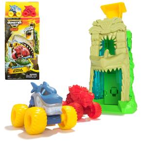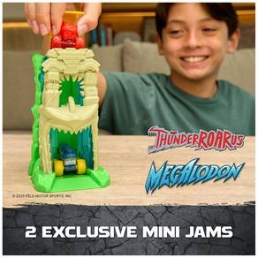 Monster Jam Mini Jams, Lanzador Megalodon Jungle Blaster, 2 Camiones Monster Die-Cast Exclusivos y Accesorio, Juguetes para Niños y Niñas de 3 Años en Adelante - Lanzador de 7 pulgadas: carga hasta 5 Mini Jams en la parte superior del lanzador y presiona el martillo consecutivamente para una diversión de disparo rápido - Incluye 2 Mini Jams Exclusivos: este set presenta versiones coleccionables a escala 1:87 de Megalodon con detalles llamativos y un ThunderROARus inspirado en gemas - Accesorio Caja de Carga: listo, apunta y lanza; usa la caja de carga como objetivo para acrobacias y observa como tus camiones chocan y se destruyen - Almacenaje Monster Jam: el Megalodon Jungle Blaster también funciona como almacenamiento mientras coleccionas otros camiones Mini Jams o combinas con otros sets Mini Jams para más acción Monster Jam (cada uno se vende por separado) - Juguetes para niños y niñas de 3 años en adelante: camión monstruo para niños y niñas de 3 años en adelante; perfecto regalo para Navidad o cumpleaños. Camiones Monster Jam, camiones RC, autos RC y autos de juguete están entre los favoritos de niños en figuras y sets de juego - Incluye: 1 Lanzador, 2 Camiones Mini Jam, 1 Caja de Carga - Cubierto por el compromiso de cuidado Spin Master. Consulta detalles completos abajo.