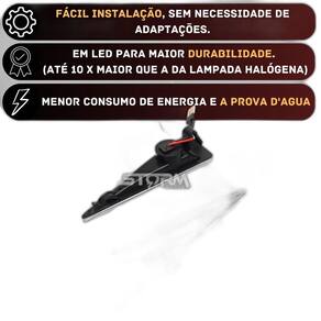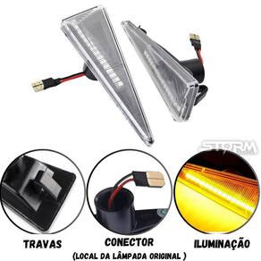 O produto é novo, com garantia, e importado. Trata-se de um pisca de direção lateral com acendimento sequencial. A cor da luz LED é âmbar, enquanto a cor externa é transparente. A caixa é feita de ABS e as luzes são de LED.