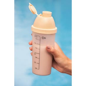 Com dimensões de 8,6 cm de comprimento e largura e 21,3 cm de altura, a Shakeira é livre de BPA. O corpo, fabricado em polipropileno, e a tampa em polímero super-resistente são duráveis e fáceis de limpar. O misturador integrado é perfeito para evitar grumos em suas batidas. Recomenda-se não usar com bebidas que contenham gás ou estejam quentes.