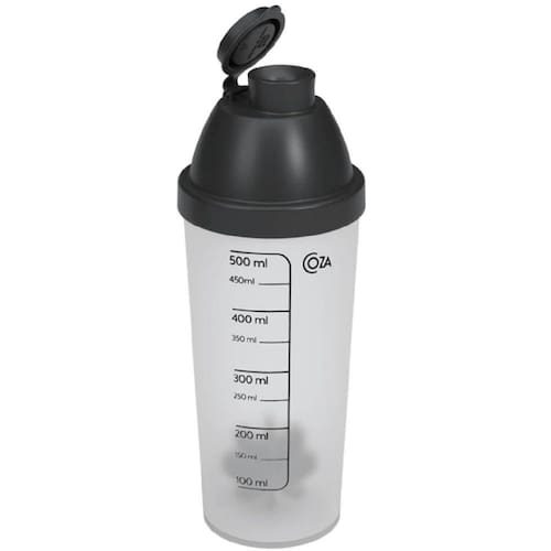 - Especificações técnicas: a Shakeira 500 ml Linha Nutri/Coza é fabricada em polipropileno com estrutura transparente, misturador e tampa em Preto Coza. Suas dimensões têm 8,6 cm de diâmetro e 21,3 cm de altura. A Shakeira da Coza pode ser levada ao freezer ou lava-louças.