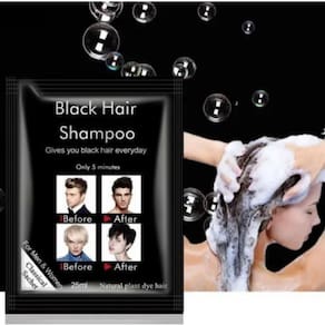 A caixa contém: 10 envelopes de 25 ml cada para 10 lavagens E 10 pares de luvas de plástico. Em 5 minutos com este shampoo, seu cabelo ficará sem cabelos grisalhos e com uma cor preta muito natural. Ideal para homens e mulheres que não gostam de tinturas de cabelo. Duração aproximada de 4 a 5 semanas, dependendo da frequência com que você lava o cabelo. Se seu cabelo já tem traços de tintura ou é difícil de tingir, deixe o xampu por 10 a 15 minutos para obter um tom ainda mais intenso.