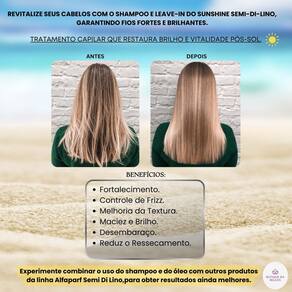 A linha semi di lino sunshine after-sun da alfaparf milano oferece soluções específicas para restaurar e proteger os fios expostos ao sol, destacando-se o after-sun low shampoo e o hair protective milk.