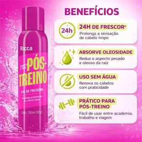Descubra a solução ideal para manter seus cabelos sempre frescos e com aspecto limpo, mesmo após os treinos mais intensos. O Shampoo a Seco Ricca Pós-Treino 150ml da BELLIZ COMPANY foi especialmente desenvolvido para quem busca praticidade e eficácia, resolvendo o problema da oleosidade e falta de tempo para lavar os cabelos após o exercício. Com sua fórmula inovadora, ele oferece até 24 horas de frescor, absorvendo a oleosidade e revitalizando os fios instantaneamente. Ideal para mulheres e homens com rotinas agitadas que não abrem mão de cuidar dos cabelos sem perder tempo, proporcionando uma sensação de limpeza e bem-estar imediata.