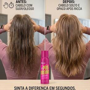 Agite bem a embalagem antes de usar. Aplique o Shampoo a Seco Ricca Pós-Treino diretamente na raiz dos cabelos secos, a uma distância de aproximadamente 15 cm. Massageie com as pontas dos dedos para espalhar o produto e absorver a oleosidade. Espere alguns instantes e, em seguida, penteie ou escove os cabelos para remover o excesso de produto. Para um resultado ainda melhor, utilize um secador de cabelo com ar frio para dar volume e movimento aos fios.