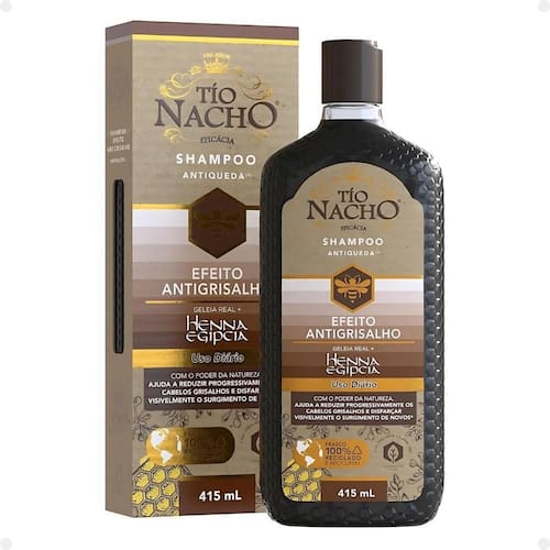 Shampoo antiqueda efeito antigrisalho o shampoo efeito antigrisalho possui geleia real e henna egípcia vegetal, ajuda a escurecer progressivamente os fios indesejados. Cabelos mais rejuvenescidos, fortes, brilhantes, mais pigmentados e com aparência natural. Proporciona cor gradual aos cabelos grisalhos, não cobrindo-os completamente e não atuando no nivel do bulbo capilar. Resultados visiveis a partir de 30 aplicações da linha completa. Para cabelos castanhos a escuros. . Ingredientes de origem natural geleia real: conhecida por ser rica em nutrientes, vitaminas e aminoácidos. Henna egípcia vegetal: conhecida por escurecer o cabelo, promovendo uma cor uniforme e redução dos fios indesejados, como os grisalhos. . Modo de uso aplique nos cabelos molhados e massageie o couro cabeludo até formar espuma. Enxágue bem. . Composição água, lauriletersulfato de sódio, cocoamidopropilbetaína, cloreto de sódio, óxido de lauramidopropilamina, perfume, fenoxietanol, dimetil lauramida/miristamida, propilenoglicol, poliquatérnio-7, cloreto de goma guar hidroxipropiltrimônio, óxido de miristamidopropilamina, glicerol, caprililglicol, extrato de geléia real, ácido cítrico, corante preto 77266, crospovidona, azul básico 99, marrom básico 16, corante violeta 60730, vermelho básico 76, amarelo básico 57, hena , decilenoglicol, hexil cinamal, limoneno. . Código de registro sanitário anvisa 25351.199625/2024-46