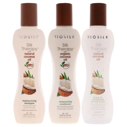 Um óleo de coco natural é formulado especificamente para limpar e nutrir, ao mesmo tempo que fornece hidratação intensa. Infundida com óleo de coco natural e seda, essa linha de produtos é suave o suficiente para o uso diário e oferece óleos hidratantes. É enriquecido com óleo de coco orgânico e seda para limpar e repor a umidade do cabelo. A fórmula segura de cor nutre para fortalecer e recuperar a vitalidade, proporcionando cabelos macios, macios e sedosos.