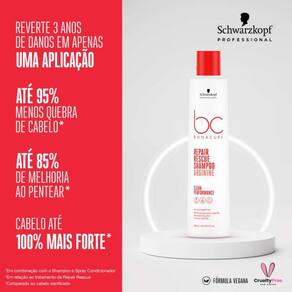 A Ísis Cosméticos é uma empresa que atua no ramo de produtos para beleza, cosméticos e cuidados pessoais. Nós da loja Ísis Cosméticos trabalhamos com as principais marcas do mercado, levando até você os melhores produtos e lhes oferecendo uma ótima experiência. Somos uma empresa que preza pela confiança e satisfação de nossos clientes. ======================================================================================== Shampoo Bonacure Clean Repair Rescue 250ml Shampoo suave para cabelos danificados. Schwarzkopf Professional BC Bonacure Clean Performance Repair Rescue devolve a força interna e melhora a elasticidade dos fios sem sobrecarregar. O Shampoo Schwarzkopf Professional BC Bonacure Clean Performance Repair Rescue conta com fórmula enriquecida com Arginina que reverte instantaneamente os danos. Além de ajudar na reparação da fibra capilar, adiciona brilho e cuidado extra. A linha Repair Rescue conta com a ação da Arginina que reverte instantaneamente 3 anos de danos em apenas uma aplicação. A nova gama BC Bonacure Clean Performance apresenta uma fórmula clean beauty inovadora, 100% vegan, sem sulfatos, silicones, óleos minerais, microplásticos e corantes artificiais, com um elevado nível de biodegradabilidade; tecnologia avançada com Vegan Care Complex; e embalagens sustentáveis em produtos de rendimento elevado. Arginina: a L-arginina é um -aminoácido proteinogénico e pode ser encontrada no cabelo como um bloco de construção essencial. A principal função da L-arginina é ser Utilizado para construir proteínas. O cabelo é profundamente reconstruído e protegido por um escudo antifricção reativo. Como resultado, o cabelo fica instantaneamente e visivelmente reparado, fortalecido, cheio de movimento, com brilho e maciez. Tecnologia Avançada: traz a nova Tecnologia Vegana com aminoácidos de trigo e soja que restaura a força e elasticidade no interior do Córtex; e o Equalizador de Células - com uma ação externa que alinha e sela a cutícula capilar. O resultado é um cabelo bonito, com proteção renovada, excelente elasticidade e brilho saudável, seja ele liso, ondulado, cacheado ou crespo. Além disso, essa tecnologia não contém compostos derivados de animais e é respaldada pelos padrões de qualidade da Henkel. Fórmulas Limpas: Bonacure Clean Performance oferece uma composição 100% vegana, livre de sulfatos, silicones, parabenos, óleos minerais, microplásticos e corantes artificiais, apresentando alto nível de biodegradabilidade - de 88% a 99%. O compromisso da marca com o meio ambiente vai além: a exclusiva tecnologia Fast-Rinse nos condicionadores significa que é possível utilizar 50% a menos de água para enxaguar o produto. Além disso, os itens sem sulfato fazem menos espuma que os demais. É o caso dos novos Shampoos, que têm uma ação ainda mais potente que a linha Bonacure anterior. Embalagens Sustentáveis: limpa por dentro e por fora, a embalagem Bonacure Clean Performance é amiga do planeta, totalmente reciclável e feita com até 97% de plástico reciclado. Para produzi-la, a Schwarzkopf Professional reciclará mais de 260 toneladas de plástico, enquanto usa 72% menos plástico com a introdução de novas tampas. Limpeza suave sem agredir os fios; cabelos reparados, fortalecidos, com brilho e maciez. Conselho de Aplicação Aplicar no cabelo molhado, massagear e enxaguar completamente. Repetir se necessário. O shampoo também é importante para preparar os fios para receber o tratamento que vier em seguida. Ele abre as cutículas do cabelo para que a fórmula da máscara ou ampola consiga penetrar na fibra capilar e assim, agir com eficácia e rapidez. ========================================================================================= Anúncio composto por: 01unid. Shampoo Bonacure Clean Repair Rescue 250ml Sku Interno: BC0009 Agradecemos a preferência.