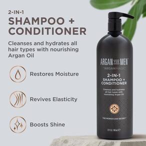 - SHAMPOO E CONDICIONADOR 2 EM 1 ARGAN FOR MEN (32 fl oz): Projetado especificamente para homens, este produto combina os benefícios do xampu e do condicionador para agilizar sua rotina de higiene.