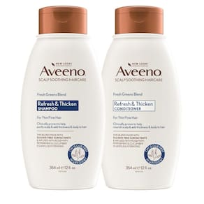 Shampoo e condicionador Aveeno Fresh Greens com alecrim, hortelã e pepino para engrossar e nutrir, clarear e dar volume para cabelos finos ou finos, sem parabenos, 12 oz, 2 unidades (pacote com 1)