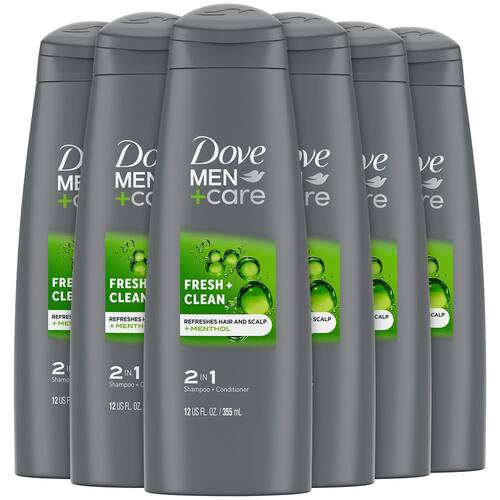- Dove O xampu e condicionador 2 em 1 da Men+Care Fresh and Clean é infundido com cafeína e mentol para proporcionar um toque legal a cada uso. Nosso xampu e condicionador funciona para lavar a sujeira e a gordura enquanto fortalece o cabelo.