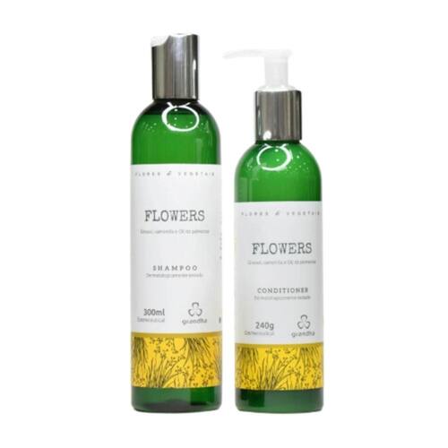 Shampoo e Condicionador Flowers Flores e Vegetais CONTÉM: 01 Shampoo para Cabelos Finos e Delicados Flowers 300ml 01 Condicionador para Cabelos Finos e Delicados Flowers 240g