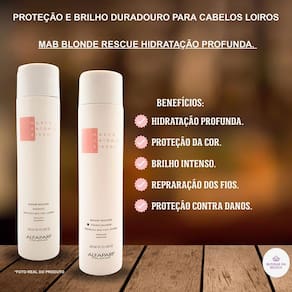 Este kit contém 1- shampoo mab blonde rescue 300ml 1-condicionador mab blonde rescue 300ml Somos a butique da beleza Uma empresa especializada no comércio de cosméticos e semijoias. Estamos sempre entre os melhores vendedores. Nosso compromisso é com você Seu conforto e segurança são nossos propósitos Servir e ajudar são nossos deveres revitalize e proteja seus cabelos loiros com o kit mab blonde rescue, composto por shampoo e condicionador especialmente formulados para nutrir, hidratar e manter a cor vibrante dos fios claros. Desenvolvida sob a orientação do renomado cabeleireiro marco antônio de biaggi, esta linha combina ativos naturais e tecnológicos para proporcionar brilho intenso e saúde aos seus cabelos. Indicado para qual tipo de cabelo Cabelos loiros, naturais ou descoloridos Cabelos opacos e ressecados Cabelos fragilizados Benefícios Hidratação profunda: o squalano presente na fórmula nutre e protege os fios, enquanto o tamarindo, rico em antioxidantes, forma um filme protetor que hidrata e dá brilho, além de proteger contra os raios uv. Proteção da cor: a tecnologia avançada combate a oxidação, mantendo os loiros vivos e radiantes por mais tempo. Reparação dos fios: a alta concentração de vitaminas promove reestruturação dos fios e uniformização da fibra capilar, resultando em cabelos mais fortes e saudáveis. Resultados Cabelos mais fortes e sedosos Fios brilhantes e radiantes Cabelos alinhados e revitalizados Loiros mais vibrantes e protegidos contra danos externos Modo de uso Shampoo: aplique nos cabelos molhados, massageando suavemente até formar espuma. Enxágue completamente e, se necessário, repita a operação. Condicionador: após lavar com o shampoo, aplique o condicionador na extensão dos fios molhados, massageie suavemente e deixe agir de 2 a 3 minutos. Enxágue bem com água abundante. Dicas da butique da beleza Para intensificar os efeitos do kit mab blonde rescue, utilize regularmente ambos os produtos para manter a cor e o brilho dos seus fios loiros. Combine com outros produtos da linha mab blonde rescue para potencializar a hidratação e a proteção dos cabelos loiros. Dúvidas frequentes Posso usar o kit mab blonde rescue diariamente Sim, os produtos são formulados para serem suaves e seguros para uso diário, dependendo das necessidades do seu cabelo. O kit mab blonde rescue ajuda na recuperação de cabelos danificados Sim, ele promove reestruturação e hidratação profunda, fortalecendo fios danificados e deixando-os mais saudáveis. É adequado para cabelos quimicamente tratados Sim, os produtos são seguros para uso em cabelos que passaram por processos químicos. O kit mab blonde rescue possui proteção contra raios uv Sim, sua fórmula contém ativos que protegem os fios contra os danos causados pelos raios uv. É seguro para quem tem couro cabeludo sensível Sim, os produtos possuem uma fórmula suave e podem ser por pessoas com couro cabeludo sensível. Invista no kit mab blonde rescue e resgate a beleza natural dos seus fios loiros com resultados incríveis