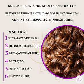 Para potencializar os resultados, utilize a máscara da linha mab brazilian curls semanalmente, garantindo uma hidratação ainda mais profunda e cachos mais definidos.