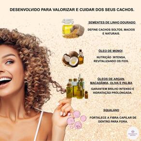 Hidratação profunda: a combinação do óleo de monoi com o squalano penetra profundamente na fibra capilar, restaurando a umidade e garantindo cachos macios e nutridos.