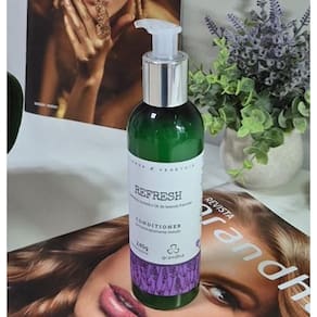 Harmonização do sistema capilar para cabelos frágeis e o couro cabeludo debilitado ou excessivamente oleoso. O kit Refresh, da linha de terapia capilar, Flores e Vegetais, combina um toque de óleo essencial de lavanda com os cuidados da calêndula e a refrescância da hortelã para a harmonização do sistema capilar e o tratamento de cabelos frágeis.