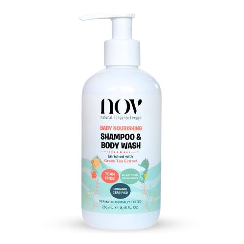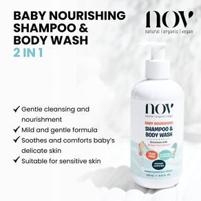 Shampoo e sabonete líquido vegano orgânico natural para bebês NOV | Fórmula vegetal sem lágrimas para limpeza e hidratação suaves, feita sem ingredientes agressivos