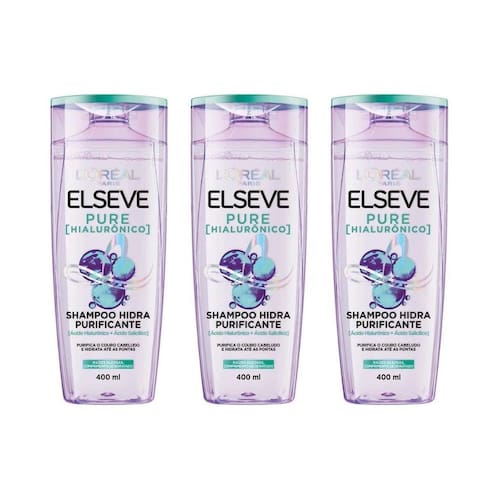 Shampoo elseve 400ml puro hialurônico - kit com 3un