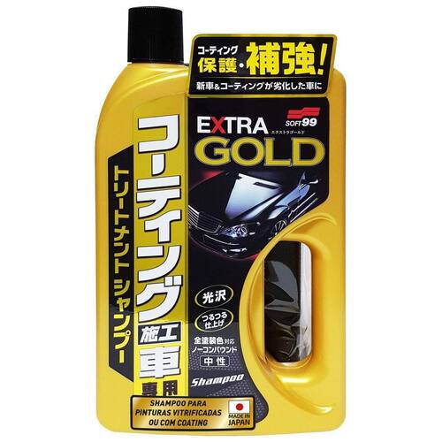 DETALHES DO shampoo extra gold for coated car 750ml soft99: Este shampoo é indicado para carros vitrificados, promovendo a limpeza completa sem agredir sua pintura e revestimento. Produto possuí PH neutro deixando um brilho espelhado na superfície.