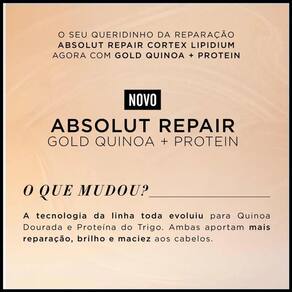 Shampoo gold quinoa absolut repair 1,5l - l'oréal Sobre o produto: shampoo reconstrutor para tratamento de cabelo muito danificado. Fórmula enriquecida com extrato de quinoa dourada e proteína de trigo, combina uma reparação intensa com toque leve. Modo de usar: aplicar o shampoo sobre os cabelos molhados. Massagear até formar espuma. Enxaguar. Repetir se necessário. Ingredientes: aqua / water Sodium laureth sulfate Cocamidopropyl betaine Dimethicone Sodium chloride Citric acid Hexylene glycol Sodium benzoate Sodium hydroxide Amodimethicone Carbomer Guar hydroxypropyltrimonium chloride Trideceth-10 Glycerin Salicylic acid Glycol distearate Linalool Mica Peg-100 stearate Hexyl cinnamal Phenoxyethanol Steareth-6 Coco-betaine Trideceth-3 Ci 77891 / titanium dioxide Limonene Chenopodium quinoa seed extract Acetic acid Fumaric acid Hydrolyzed wheat protein Ci 19140 / yellow 5 Hydrolyzed corn protein Hydrolyzed soy protein Ci 17200 / red 33 Parfum / fragrance Cuidados/restrições: evite o contato com os olhos. Caso isso aconteça, enxágue com água em abundância. Havendo irritação, suspender o uso e procurar orientação médica. Não ingerir. Manter fora do alcance de crianças. Uso externo. Marca: Não Informado