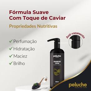 O shampoo neutro e filhote à base de caviar da peluche cosméticos pet foi desenvolvido para limpar e neutralizar os odores para todas as idades, mantendo as características naturais dos pelos. Sua fórmula balanceada com toque de caviar proporciona aos pelos maciez e brilho após um banho seguro e eficaz para o pet.
