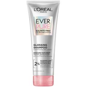 L'Oreal Paris Shampoo sem sulfato brilhante com ácido glicólico, cuidados com o cabelo para brilho duradouro e suavidade para cabelos opacos e secos, EverPure, 17 ml