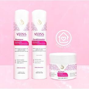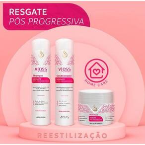 Desenvolvida para o tratamento pos-quimica, com a função de prolongar o efeito de cabelos quimicamente alisados, a linha Resgate Pós Progressiva Vloss promove uma limpeza suave e delicada, deixando os cabelos limpos, saudáveis e disciplinados. Sua formula possui Oleo de Argan e tecnologia Liss Pro Technology Blend de aminoácidos de queratina que juntos promovem a reconstrução interna da fibra capilar, devolvendo peso molecular, diminuindo frizz e prolongando o efeito liso perfeito por mais tempo. Ativos: Óleo de Argan, Nano Keratin