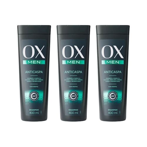 Aplique o shampoo ox men anticaspa nos cabelos molhados, massageando suavemente o couro cabeludo até formar espuma. Deixe agir por alguns minutos para potencializar os benefícios anticaspa. Enxágue bem. Para melhores resultados, utilize regularmente, repetindo a aplicação se necessário. Marca: Não Informado
