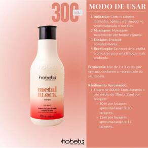 Shampoo Metal Block 300ml: Elaborado com a alta tecnologia high-detox, auxilia a remoção dos metais pesados nos fios através dos bioativos direcionados. Os metais pesados são prejudiciais à saúde capilar e diminuí-los dificulta a formação de radicais livres, proporcionando cabelos saudáveis, maleáveis e resistentes. Utilizados em pré- coloração, pré-mechas, pré-matização e pós-descoloração.