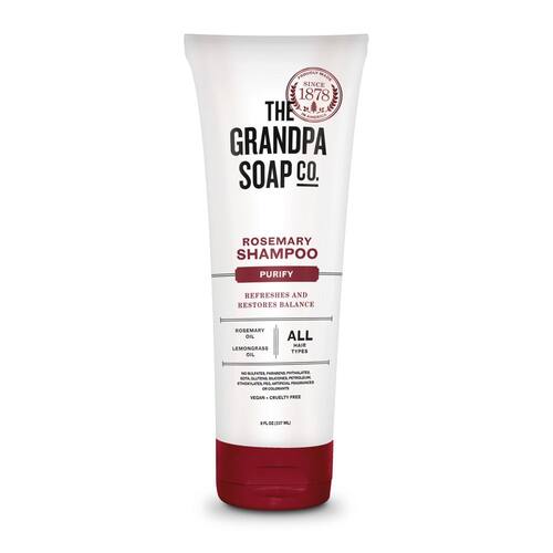 Shampoo The Grandpa Soap Company – Purificante com óleos de alecrim e capim-limão, deixa o couro cabeludo e o cabelo limpos e frescos, todos os tipos de cabelo, vegano, sem sulfatos e parabenos, 20 ml