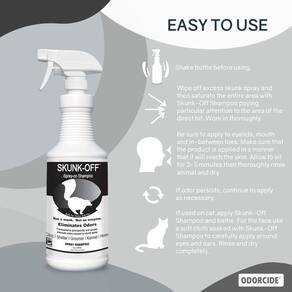 - Fácil de usar: para uso em animais de estimação, sature toda a área com o spray Skunk Off Shampoo, prestando atenção especial à área de impacto direto. Enxágue bem o animal e seque-o. Incrível removedor de odores de gambá para cães e animais de estimação.