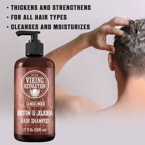 Viking Revolution Xampu masculino de sândalo com biotina e óleo de jojoba – xampu masculino natural para cabelos com vitamina B5 – xampu para queda de cabelo masculino para queda de cabelo (500 ml)