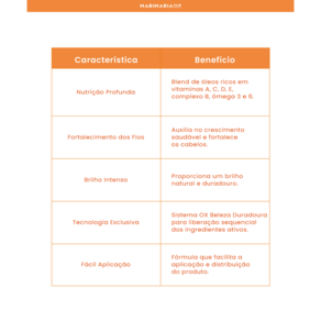 Shampoo Vita Glow da Linha OX Mari Maria Hair é a escolha perfeita para quem busca revitalizar cabelos ressecados e enfraquecidos. Desenvolvido com uma fórmula exclusiva que combina um blend poderoso de óleos ricos em vitaminas e o inovador Sistema OX Beleza Duradoura, este shampoo oferece um tratamento profundo e duradouro, garantindo cabelos mais saudáveis, fortes e radiantes.