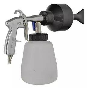 Shampoozeira Pneumática Pro-208 Pdr Shampoozeira pneumática, indicada para limpeza automotiva e jatos de espuma floculação . Especificações Técnicas: Tipo: Ferramenta de aplicação Sistema: Sucção Volume do copo: 1.000ml Peso: 0,65 Kg Pressão de trabalho: 90 psi Pressão máxima: 105 psi Entrada de ar: 1/4 Consumo de ar médio: 12 pcm Acompanha: 2 bicos/cones fino e largo e 1 conector de ar 1/4. Embalagem: 1 caixa de papelão colorida Quantidade por caixa master: 10 unidades Marca: Não Informado
