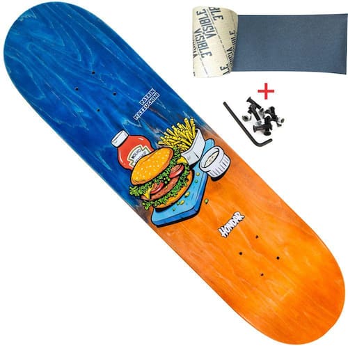 O Shape Hondar 8.0 é construído com 7 lâminas de Hard Maple canadense, coladas com resina epóxi e prensados a vácuo, que garante mais resistência e um pop melhor e contínuo.... Gráfico em Heat Transfer Serigráfico. Lixa para skate Street Visible é uma lixa emborrachada com ótimo desempenho na durabilidade e aderência. Possui adesivo forte, com revestimento posterior de vinil. A Lixa Visible tem granulação desenvolvida especialmente para skate que dá maior aderência ao solado e evita o desgaste precoce do tênis.