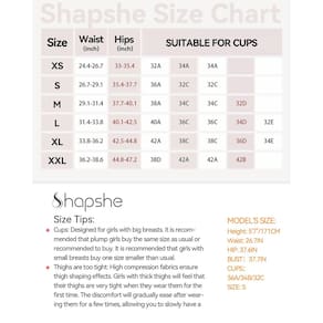 SHAPSHE Modelador de costas nuas, sem alças, decote em U, body feminino com controle de barriga, sutiã embutido nas costas, Bronzeado - Guia de seleção de tamanhos: ? Bojo: Projetado para meninas com seios grandes. Recomenda-se que meninas gordas comprem o mesmo tamanho habitual ou recomendem comprar. Recomenda-se que meninas com seios pequenos comprem um tamanho menor do que o habitual. ? As coxas são muito apertadas: tecidos de alta compressão garantem efeitos de modelagem da coxa. Meninas com coxas grossas sentirão que suas coxas estão muito apertadas quando as usarem pela primeira vez. O desconforto diminuirá gradualmente depois de usá-los algumas vezes. - Projetado para mulheres modeladoras: este modelador tem uma camada dupla de tecido na barriga que melhora o efeito de modelagem e afina melhor sua barriga. Além disso, o design do short elástico ajuda a moldar seus quadris e coxas. É adequado para todas as mulheres que querem ficar em forma. - Efeito invisível sem costura: Feito com uma camada externa lisa e brilhante que garante um desgaste sem costura, eliminando quaisquer saliências ou linhas indesejadas. Este body modelador feminino é quase invisível sob suas roupas. - Combinação perfeita para seus vestidos: decote profundo integrado e design de costas baixas, este modelador é perfeito para combinar com vários vestidos, também é uma ótima opção de modelador de noiva para vestidos de noiva. Equipado com sutiã embutido para maior conveniência. - Características de design convenientes: nosso modelador contém alças ajustáveis e destacáveis para aliviar a pressão no ombro e fornecer o máximo suporte para as costas e garantir que ele se encaixe perfeitamente em qualquer tronco. A área da virilha tem um conveniente fecho de colchete de três fileiras, tornando o banheiro quebrado sem complicações e permitindo colocar e tirar com facilidade.