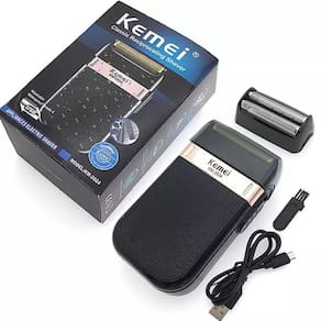 Descrição do anúncio: Barbeador elétrico kemei 2024 bivolt recarregável Agora você pode ficar sempre com a barba perfeita com o barbeador portátil de lâmina dupla kemei. Ideal para pessoas que têm alergia a lâminas tradicionais como gillette ou navalhas, o kemei 2024 oferece um método de barbear menos agressivo e sem irritação. Este shaver é recarregável via usb, levando 8 horas para uma carga completa e oferecendo 60 minutos de uso contínuo. Com suas duas lâminas, ele proporciona um corte mais rápido e eficiente. Importante: para melhores resultados, utilize uma máquina zero antes de usar o shaver em pelos curtos.