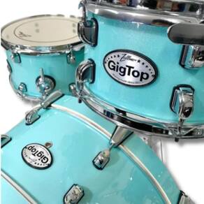 A GigTop é uma bateria pensada para pequenos palcos e que prioriza a praticidade e a facilidade de transporte. Seu bumbo compacto não apenas possibilita a montagem em espaços reduzidos, mas também, graças à ausência de suporte de tom adicionado ao seu corpo, produz um som encorpado e profundo.