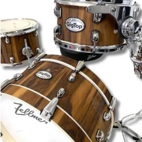 A GigTop é uma bateria pensada para pequenos palcos e que prioriza a praticidade e a facilidade de transporte. Seu bumbo compacto não apenas possibilita a montagem em espaços reduzidos, mas também, graças à ausência de suporte de tom adicionado ao seu corpo, produz um som encorpado e profundo.