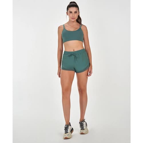 Short sobreposto é sinal de conforto e praticidade. O tecido de cima é leve, com visual transpassado e recortes em tule, trazendo charme para a peça. O short interno proporciona maior liberdade de movimento e funcionalidade, já que conta com bolso, ideal para guardar celular ou pequenos objetos.