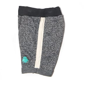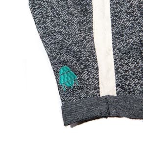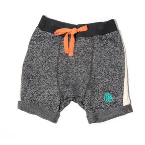 Short de bebê em moletom com efeito estonado. A faixa na lateral é de gorgurão e o cós de malha canelada tem cor contrastante. O bordado é uma nave espacial verde, a barra da perninha dobrada. Moderna, confortável e linda!