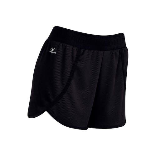 Shorts com falso transpasse e elástico no cós duplo.