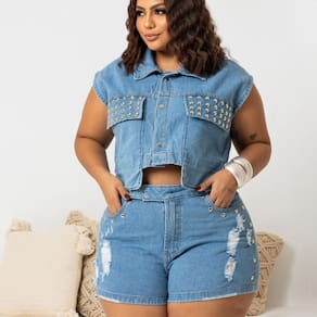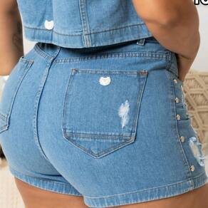 O Short Feminino Plus Size Jeans Claro com Botão de Pressão é perfeito para quem busca conforto, praticidade e um toque moderno no visual. Confeccionado em jeans de lavagem clara, ele apresenta modelagem especialmente pensada para o corpo plus size, proporcionando um caimento confortável e valorizando as curvas de forma natural.
