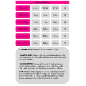 Medidas modelo: Manequim 48 - Altura 1,64 -Busto 102 - Cintura 94 - Quadril 124.