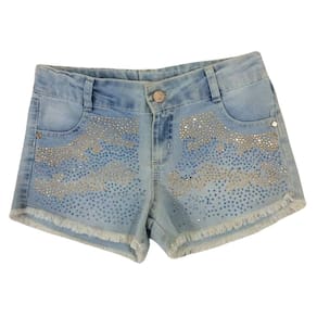Short jeans molinho, com barrinha desfiada e muito brilho na frente, super estiloso. Petit Cherie é maravilhosa!! Perfeito para ocasiões especiais como aniversários e festas em geral , ou simplesmente para dar um rolê babando na sua lindezura. Traz muita natualidade e leveza que certamente vão encantar nossas pequenas. Coleção inspirada em cores e materiais do Brasil e Europa.Tudo pensado e desenvolvido com muito carinho.