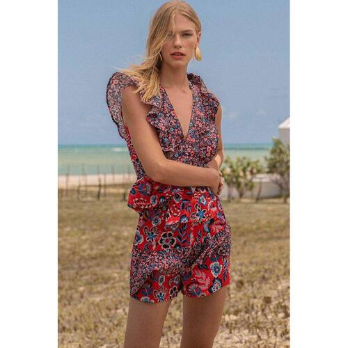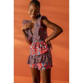 Shorts cintura alta com elástico no cós. Mistura de estampas e babado franzido na frente. Em tricoline 100% algodão com estampas exclusivas.