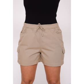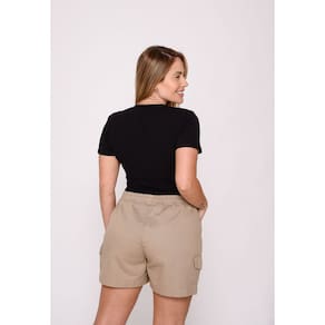 Com elástico na cintura, contém cordão frontal somente para enfeite, 2 bolsos frontais modelo concha, 2 bolsos laterais cargo.
