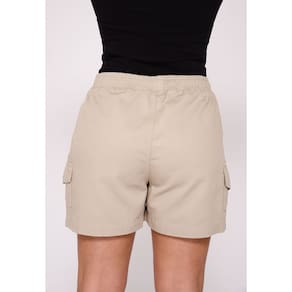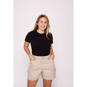 Com elástico na cintura, contém cordão frontal somente para enfeite, 2 bolsos frontais modelo concha, 2 bolsos laterais cargo.